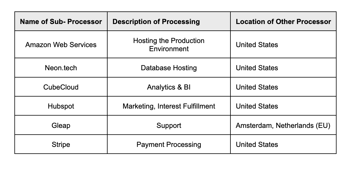 1.6. “Sub-processor” means a processor/ sub-contractor appointed by the Processor for the provision of all or parts of the Services and Processes the Personal Data as provided by the Controller.